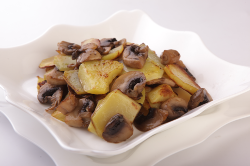 Состав: картофель - 8шт, лук репчатый - 2-3шт, грибы свежие - 400-500г, соль, перец, масло растительное для жарки